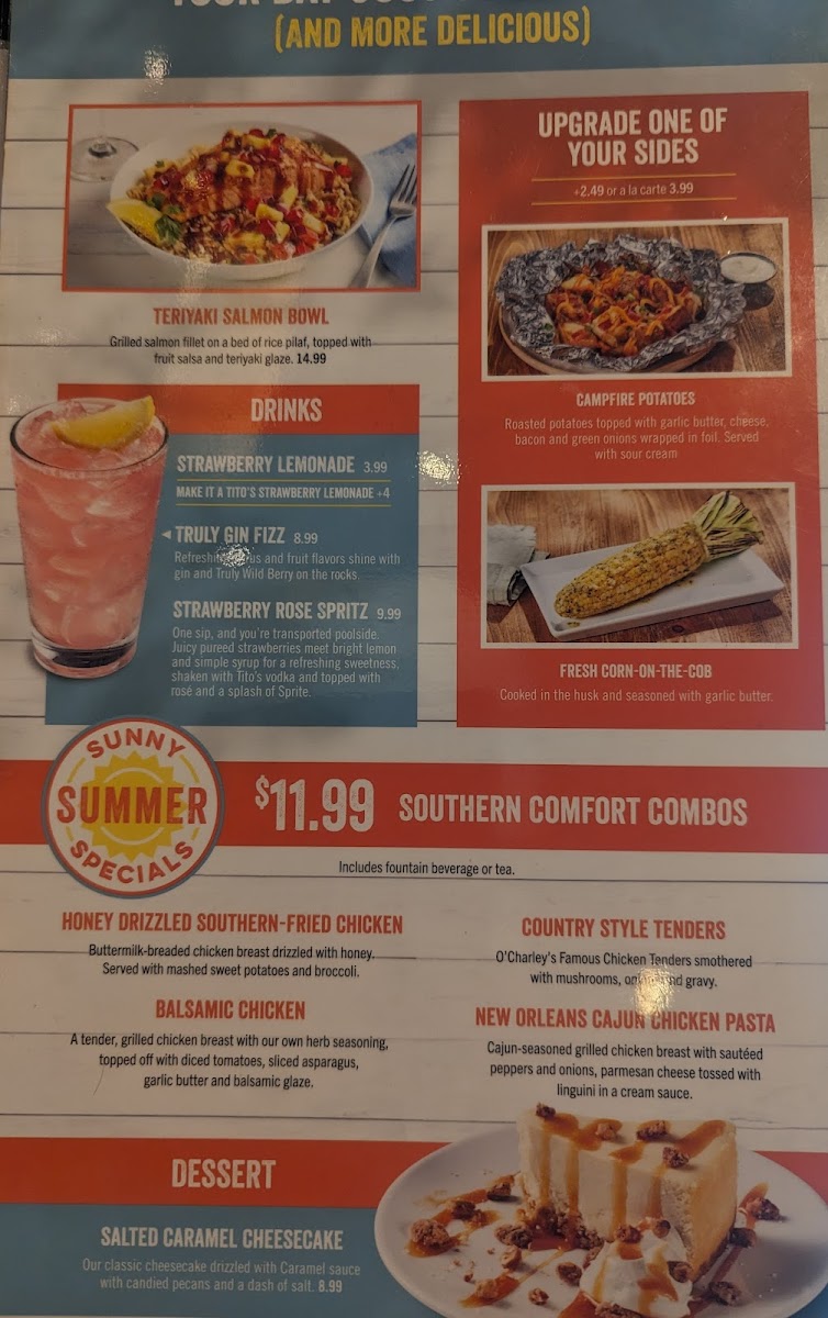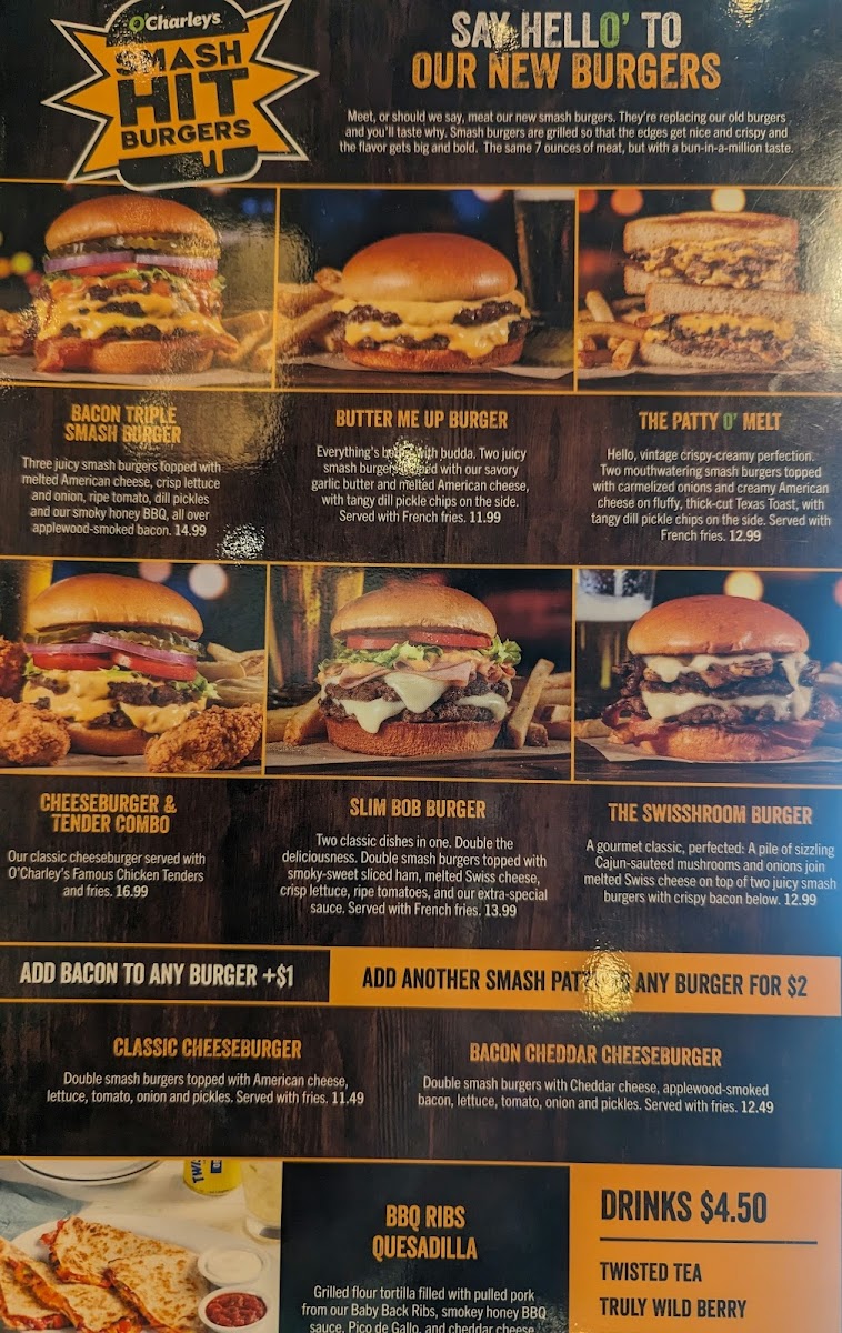 With a reputation for attentive service and a cozy atmosphere, O'Charley's promises an unforgettable dining experience. Whether you're grabbing a quick bite or enjoying a leisurely meal, you'll appreciate their commitment to quality and customer satisfaction!